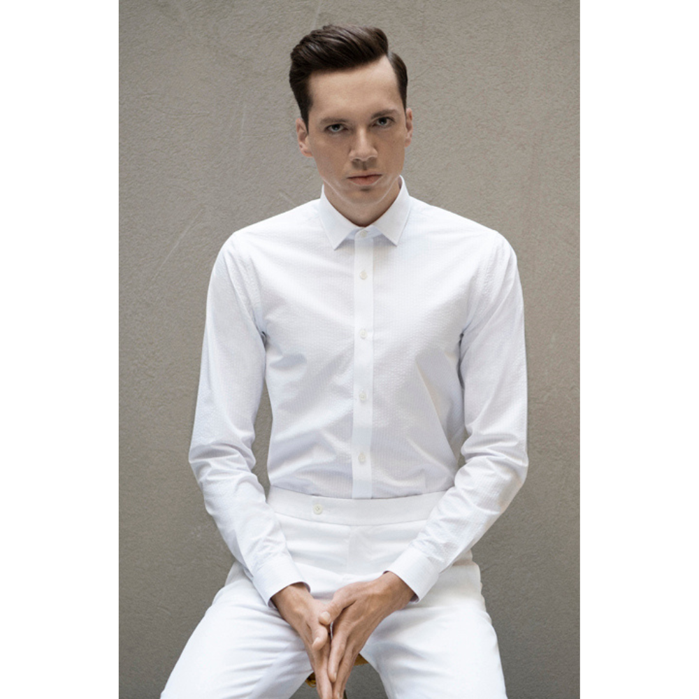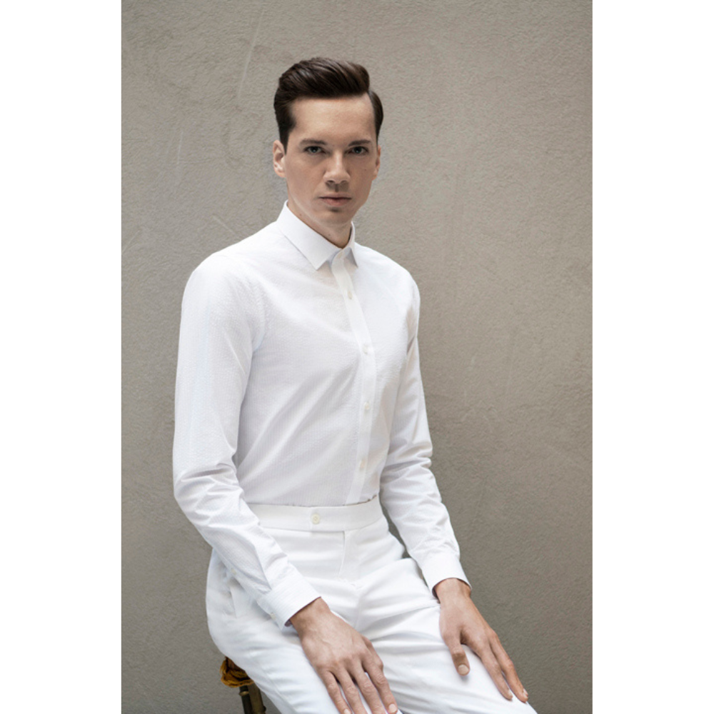 Bürümcük kumaş. %100 pamuk. Slim Fit. Küçük spor yaka. Spor manşet.