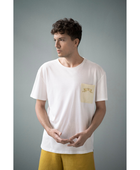 Yıldızlı flama desenli keten cepli tshirt. Oversize kesim.