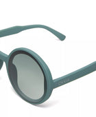 Adaçayı yeşili (Green Sage) renginde, yumuşak dokunuşlu XXL yuvarlak çerçeve, yeşil degrade lensler ve Okkia'ya özgü ikonik detaylarla doğadan ilham alan şık bir tasarım.
